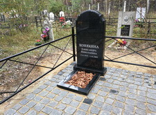 После создания основания мы покрыли территорию места захоронения гранитной брусчаткой, параллельно с этим установив заранее изготовленные памятники и цветники. Затем вернули на место металлическое ограждение и засыпали цветники и площадь перед брусчаткой корой. Этап работ на снимках не отображён, однако на приведённых ниже фото отлично виден итоговый результат.